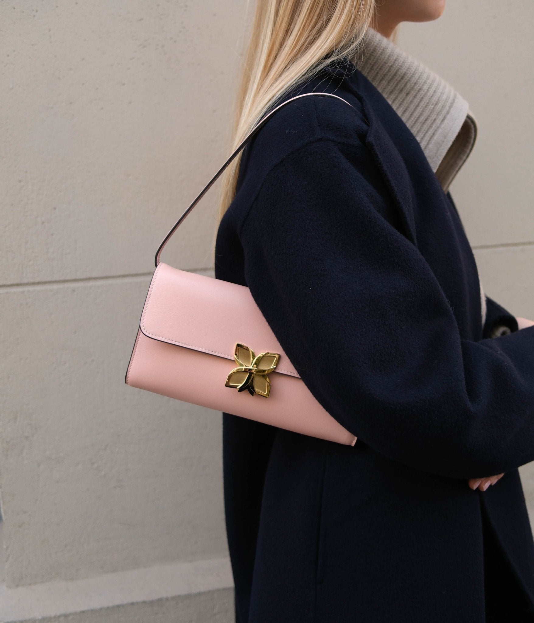 Its Rose Sakura shade, gentle and luminous, pairs beautifully with neutral tones such as beige, ivory, or light grey, adding a fresh and feminine touch to any look.