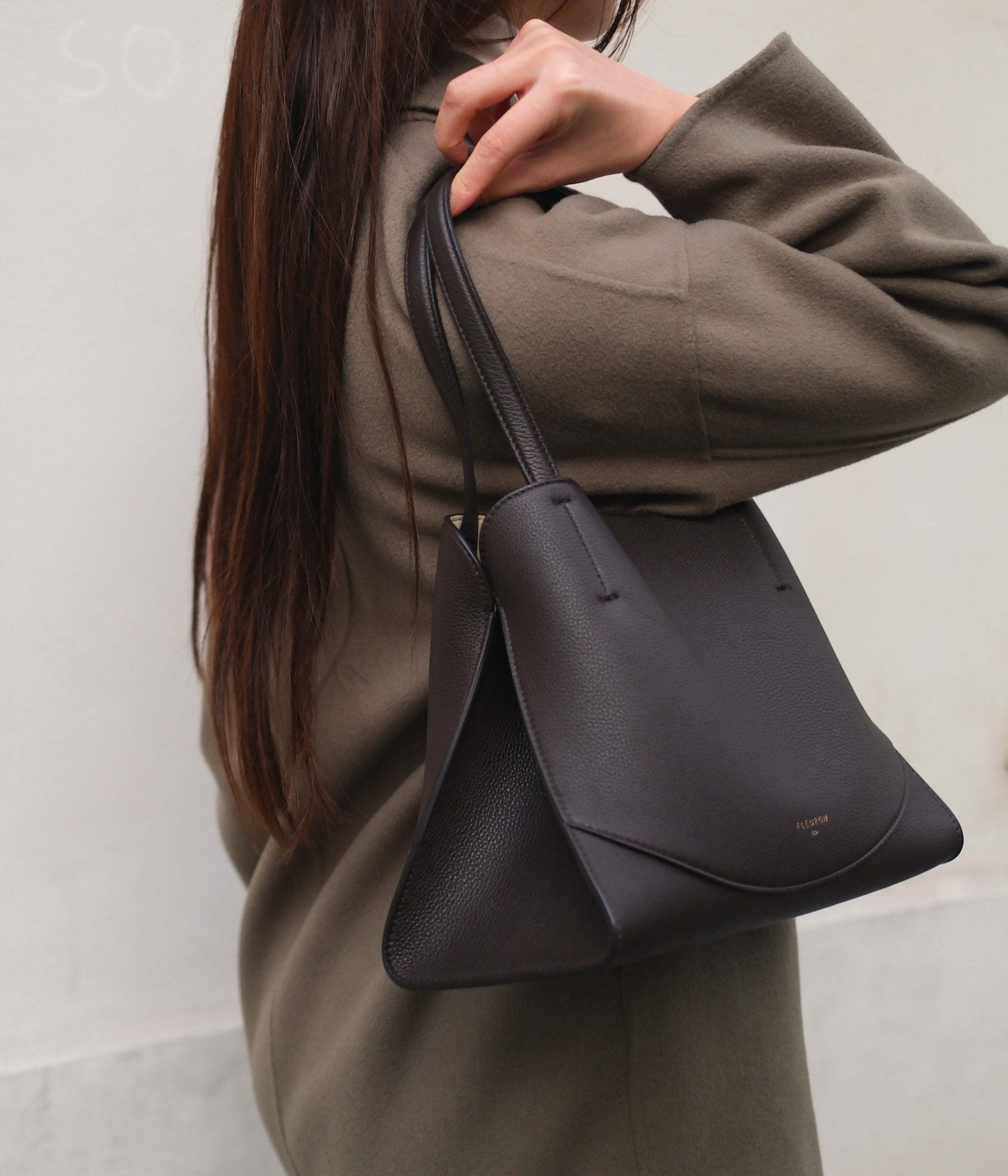 The Mini Oak in Espresso grained calfskin stands out with its confident character and compact format, making it ideal for everyday wear with effortless elegance. Its structured yet supple silhouette offers just the right amount of space for your essentials while maintaining a refined look.
