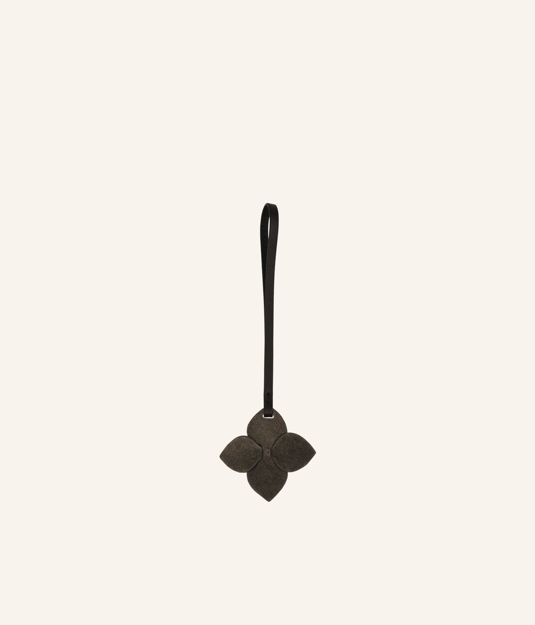 A tribute to the poetry of nature. This mini version of the leather hydrangea flower, delicately intertwined, captures the subtle grace of movement, offering timeless elegance imbued with refinement. With its deep and warm shade, the Mini Sia in Calf Suede Moka adds a sophisticated and confident touch to your bags. Handcrafted in Italy, it attaches easily to a handle or strap, adding a refined and timeless detail. When paired with an Oak tote, it sways gently with your movements, embodying the elegance of an intertwined flower and enhancing the character of every silhouette.