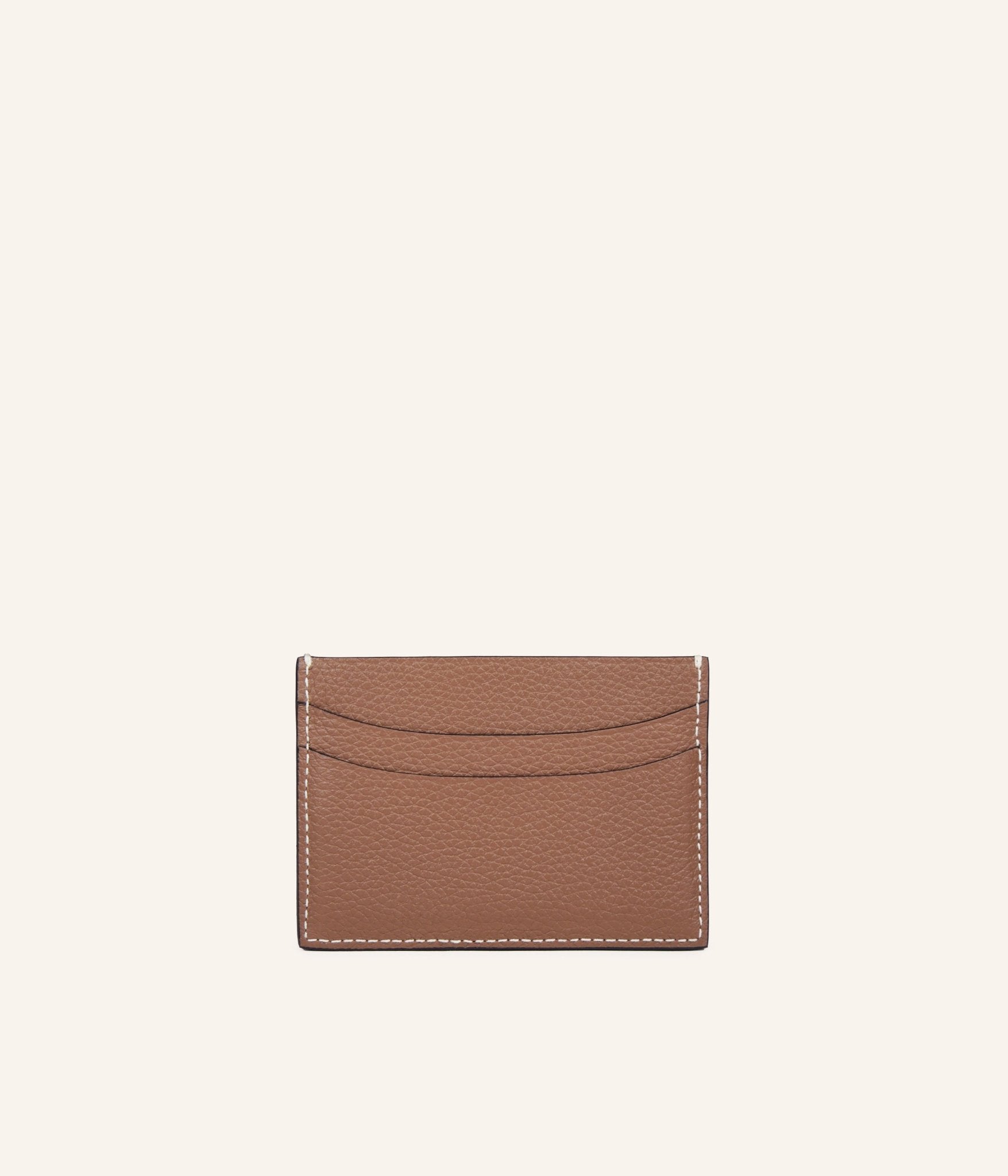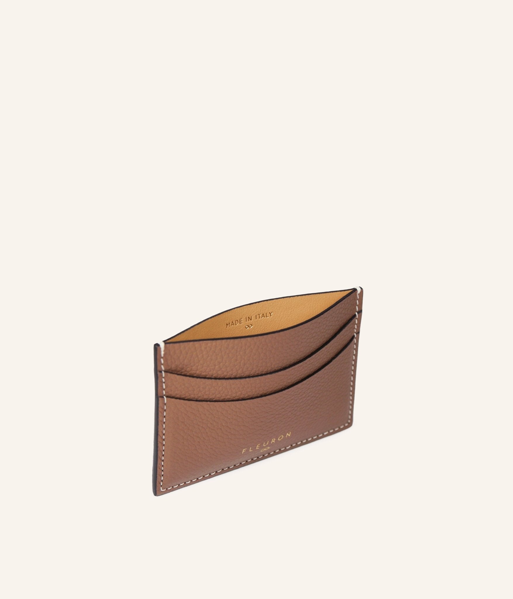 The Noa cardholder in Marron Glacé, The Noa Glazed Brown cardholder, with its soft and warm brown hue, slips easily into any bag thanks to its compact format. Handcrafted in Italy from grained calf leather, it is an essential accessory for keeping your most important cards with elegance and refinement.
