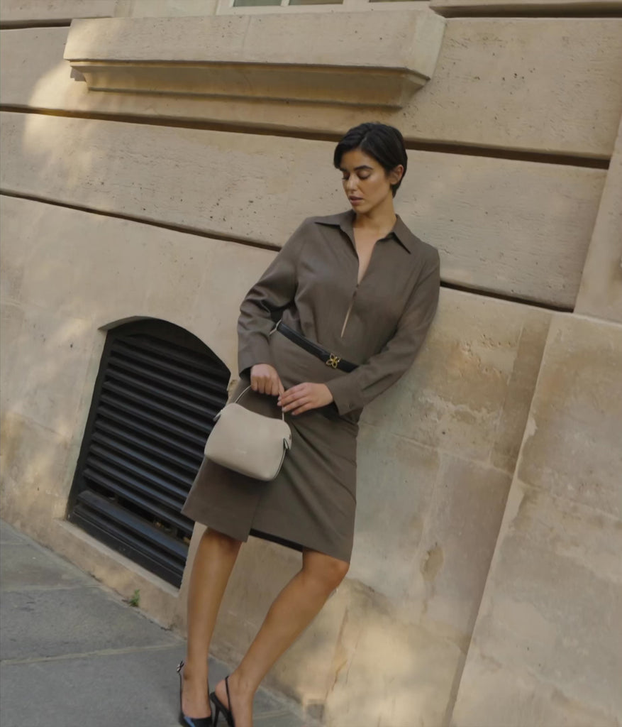 The Mini Swann in Calf Suede Dune, designed in Paris and carefully handcrafted in Italy, charms with its soft and luminous character. Its compact format makes it the perfect accessory to carry your essentials while adding a subtle touch of elegance to any outfit.