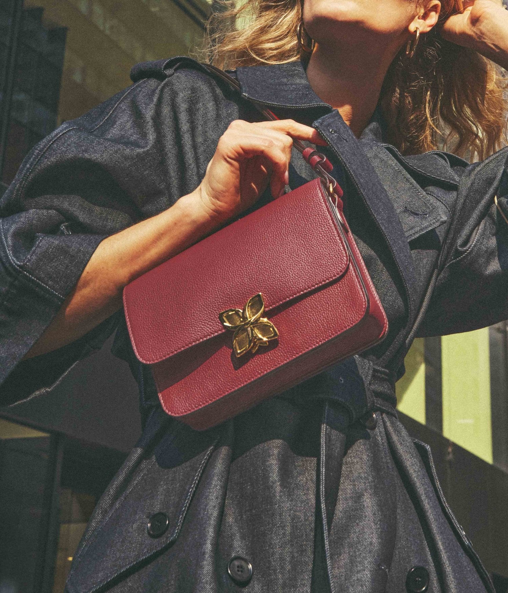Stride with distinction with the Hortensia de Fleuron bag, meticulously crafted in grained calf leather of a rich and deep Bordeaux shade. Carefully made in our Italian workshops, this bag evokes the sophistication of Bordeaux chateaux and the velvety smoothness of the finest wines. Bordeaux, with its warm undertones, brings undeniable depth to your look, conjuring both mystery and timeless elegance. Paired with soft shades like beige or powder pink, or contrasted by light grays, this Bordeaux reveals all its splendor and enhances your outfits.