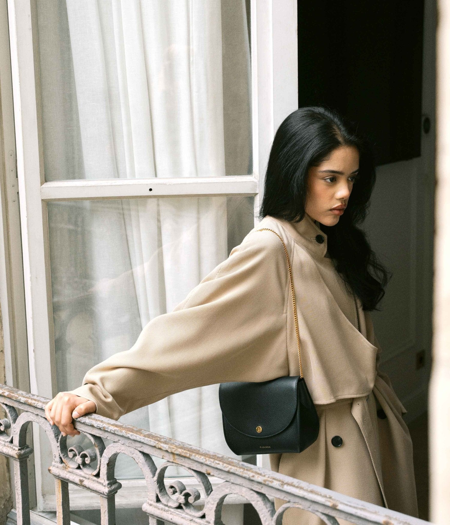 Made from carefully selected grained calf leather, it features a refined texture and impeccable structure. Discreet gold-tone finishes bring a touch of light to its deep, timeless black. This versatile hue pairs seamlessly with a wide range of tones—from off-white to charcoal grey for a sleek monochrome look, or with bolder shades like garnet red, cobalt blue, or emerald green for a striking contrast.