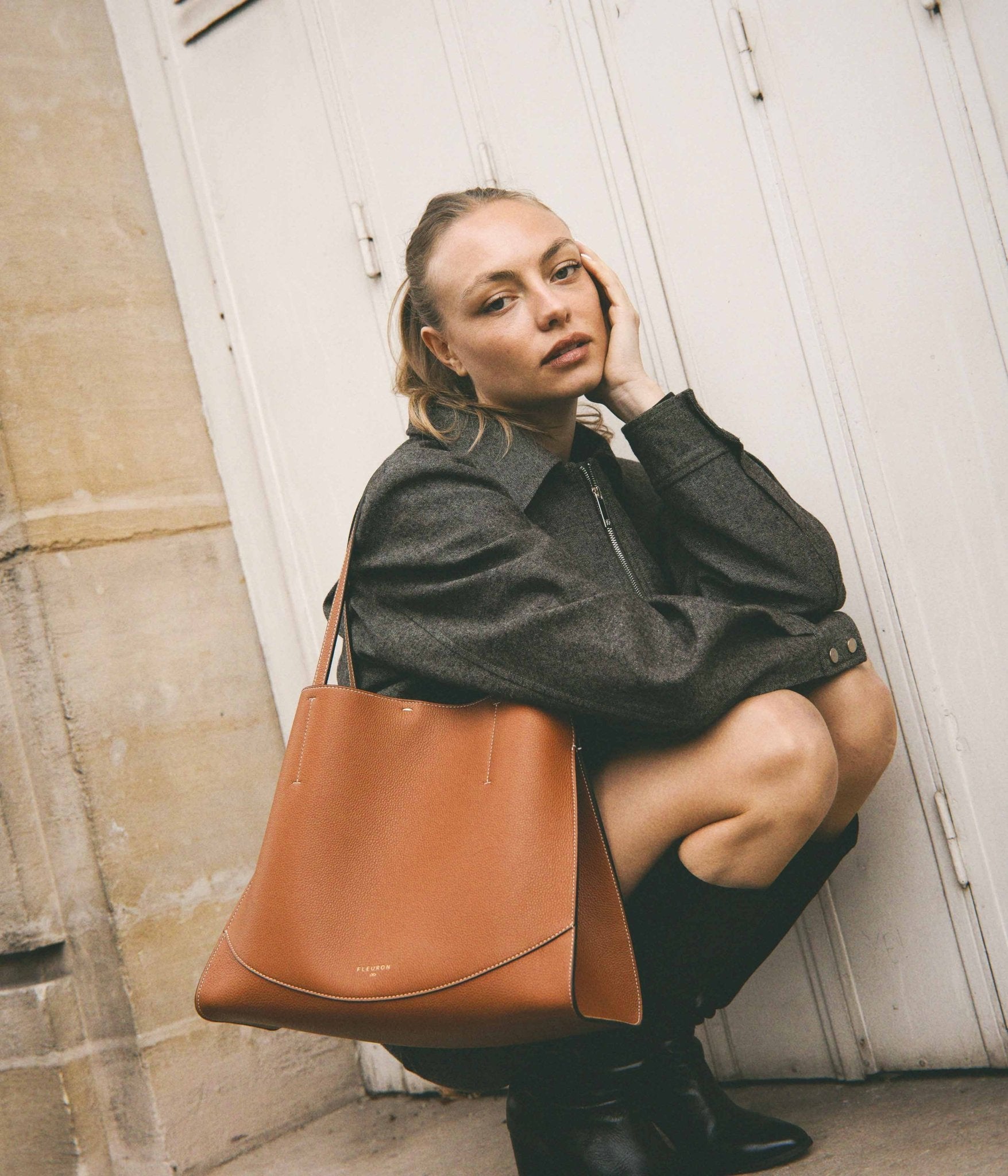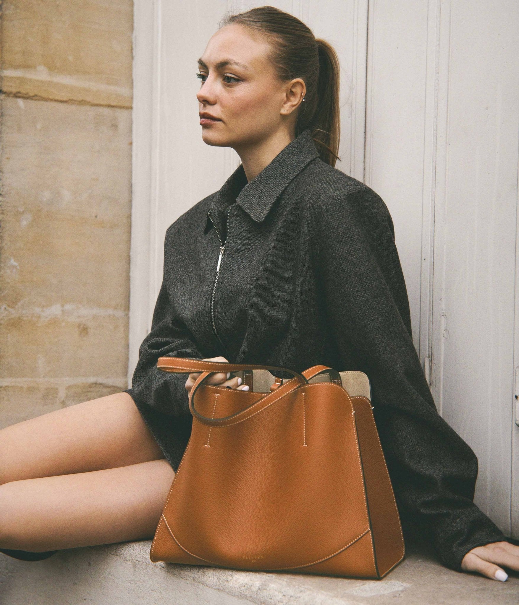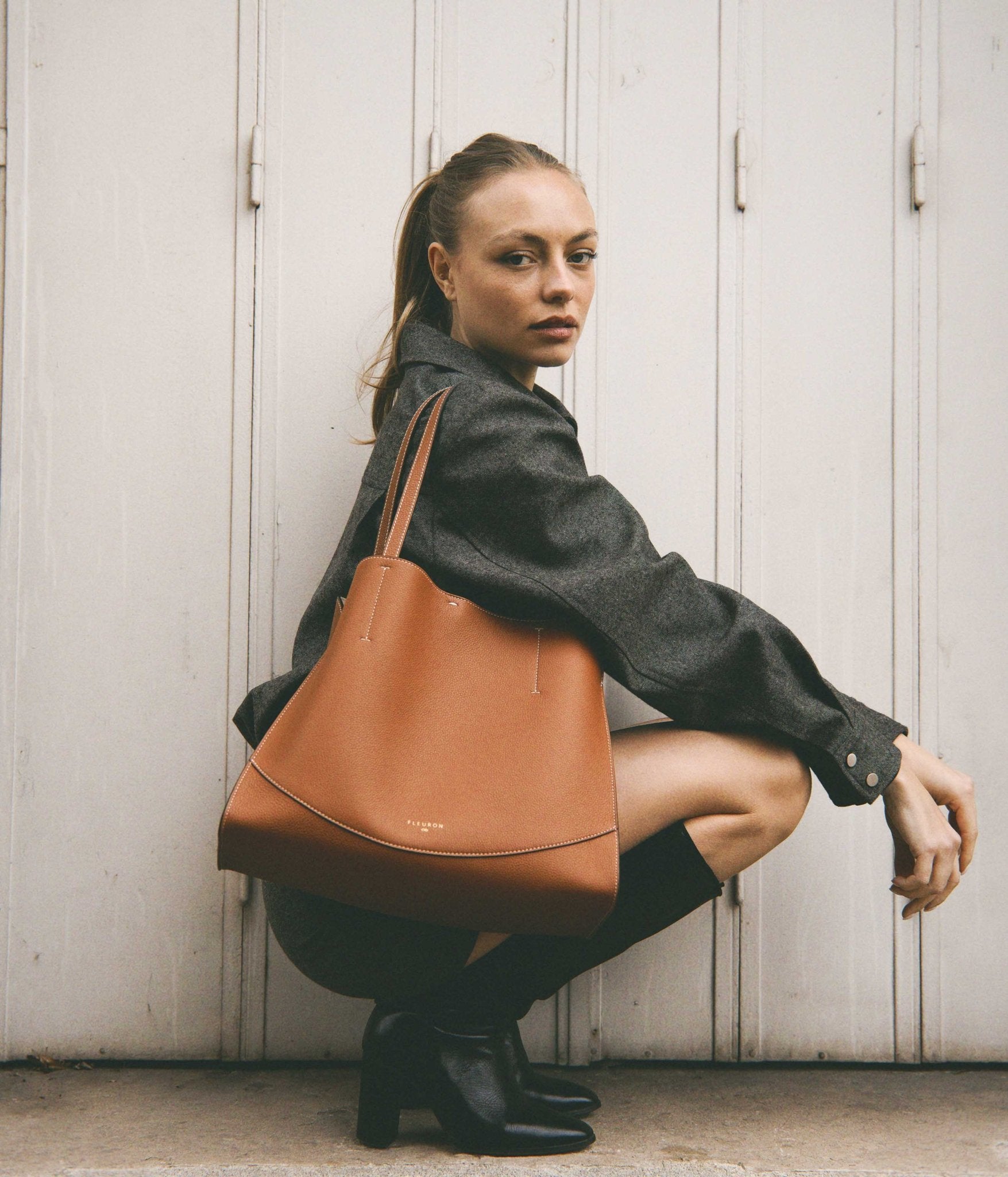 Handcrafted in Italy, it is distinguished by impeccable finishing and premium grained leather. Worn over the shoulder, it moves naturally with you. Its adjustable inner tie closure allows you to shape the silhouette to your needs, combining everyday functionality with effortless style.
